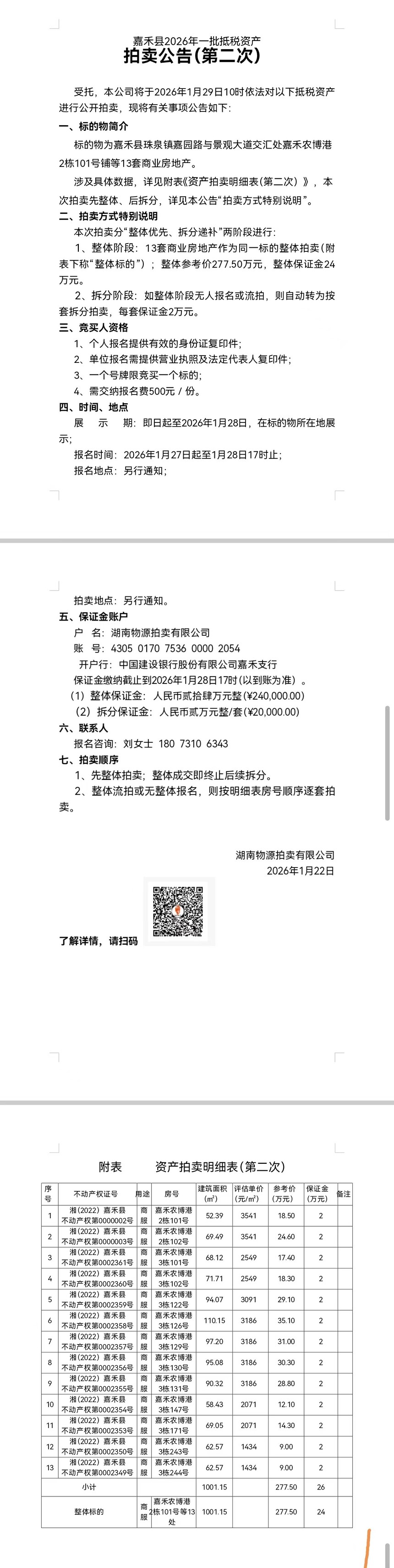 首页 >> 新闻中心 >>企业公告 >>拍卖公告 >> 嘉禾县2026年一批抵税资产拍卖公告(第二次)